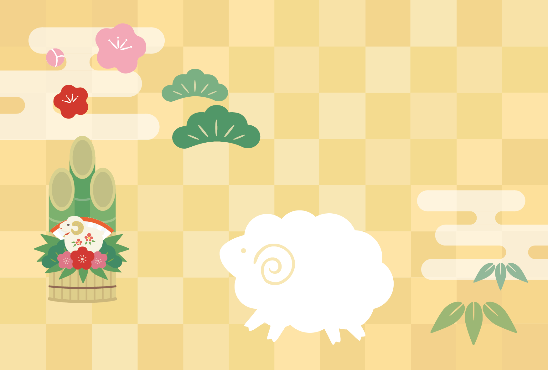 2027年・令和9年 無料の年賀状テンプレートのフリー素材はPNGデータにて無料ダウンロードできます。 「白のひつじと金の市松模様の年賀状テンプレート」は会員登録不要で個人・法人問わずご利用いただけます。 ご利用規約の内容をご確認し、年賀状テンプレート・イラストをご利用ください。