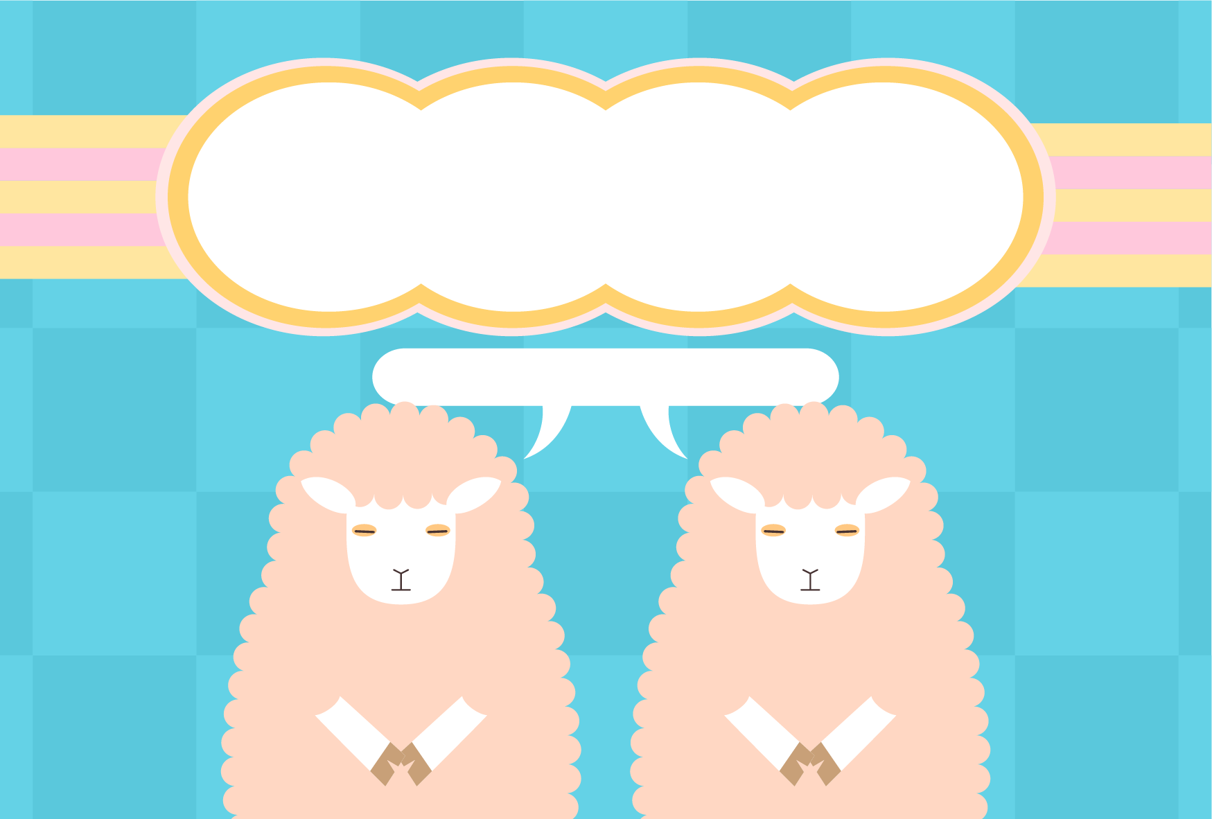 2027年・令和9年 無料の年賀状テンプレートのフリー素材はPNGデータにて無料ダウンロードできます。 「二匹のひつじと「謹賀新年」の年賀状テンプレート」は会員登録不要で個人・法人問わずご利用いただけます。 ご利用規約の内容をご確認し、年賀状テンプレート・イラストをご利用ください。