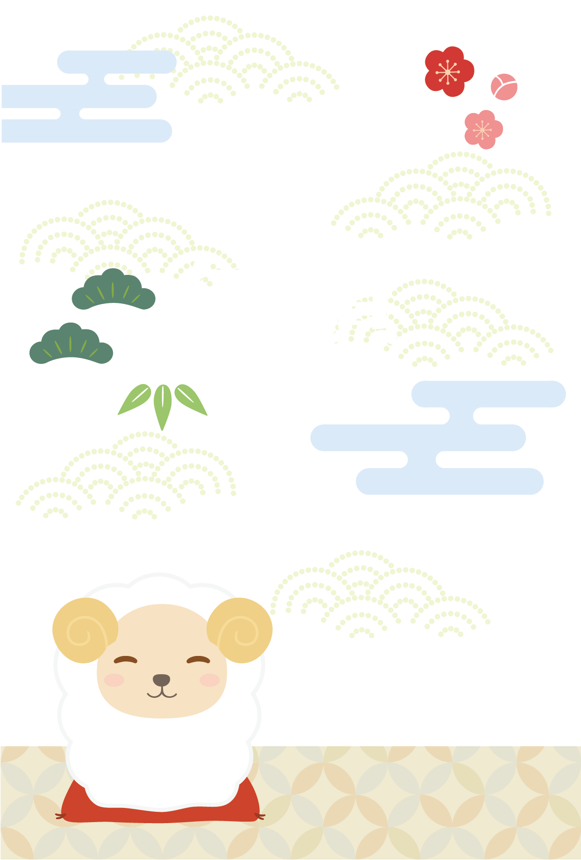 2027年・令和9年 無料の年賀状テンプレートのフリー素材はPNGデータにて無料ダウンロードできます。 「座布団に座るかわいいひつじの年賀状テンプレート」は会員登録不要で個人・法人問わずご利用いただけます。 ご利用規約の内容をご確認し、年賀状テンプレート・イラストをご利用ください。