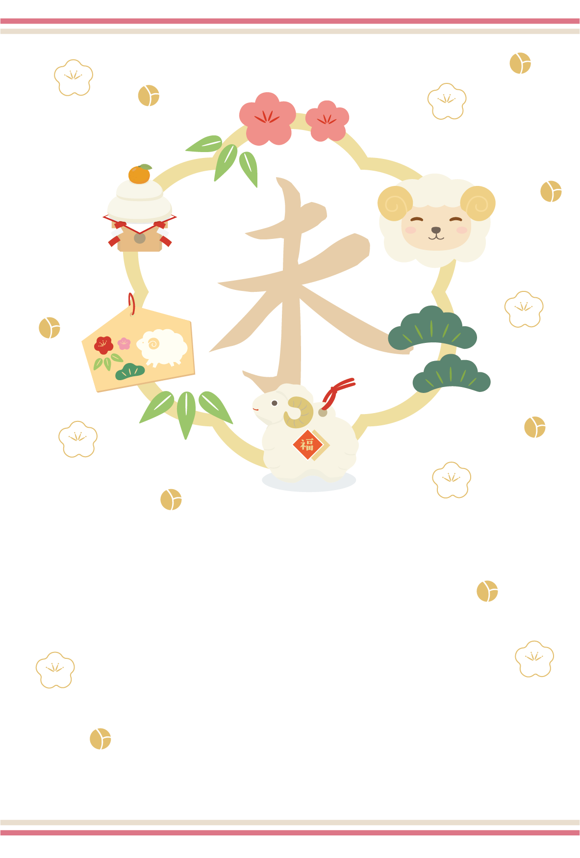 2027年・令和9年 無料の年賀状テンプレートのフリー素材はPNGデータにて無料ダウンロードできます。 「ひつじと金の梅をモチーフにした年賀状テンプレート」は会員登録不要で個人・法人問わずご利用いただけます。 ご利用規約の内容をご確認し、年賀状テンプレート・イラストをご利用ください。