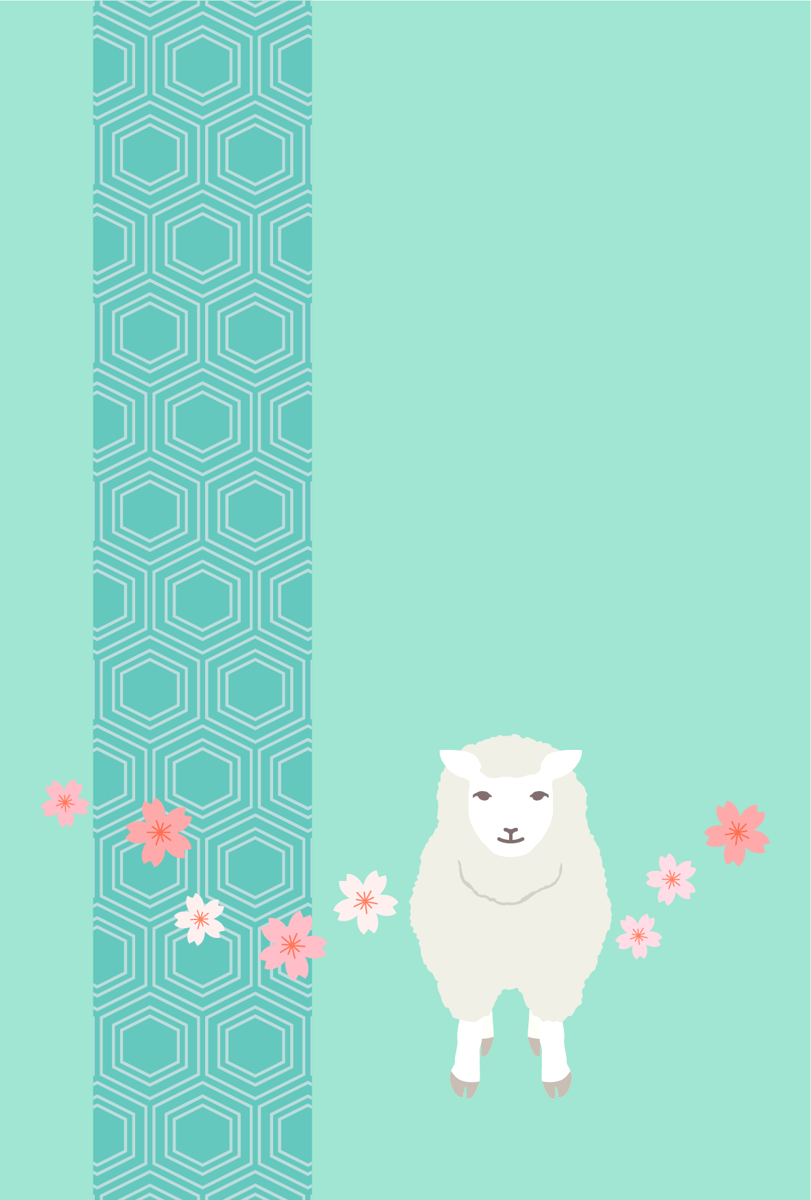 干支のひつじ(未)と桜と和風の背景でデザインした年賀状なので、