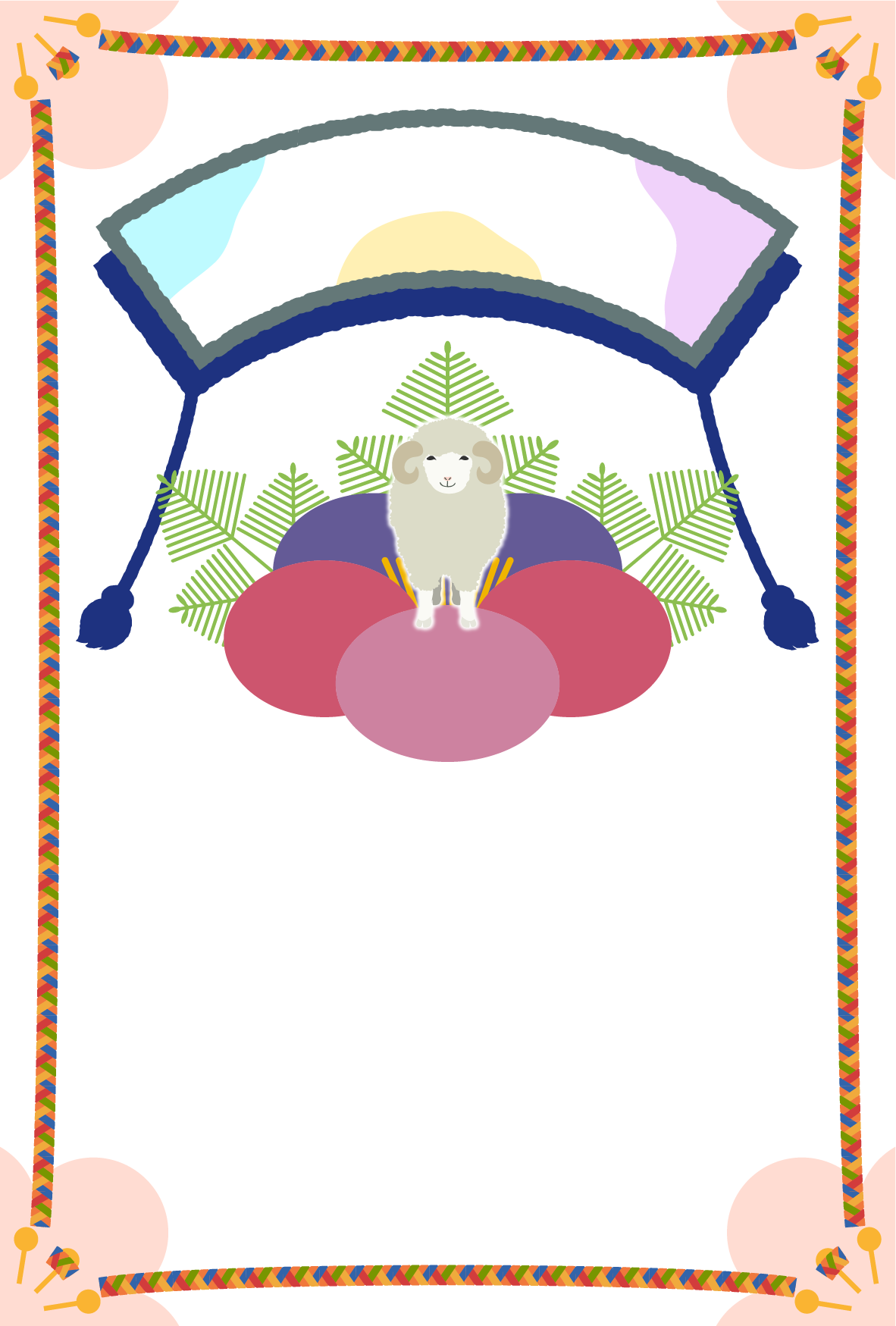 2027年・令和9年 無料の年賀状テンプレートのフリー素材はPNGデータにて無料ダウンロードできます。 「笑顔のひつじと「笑門来福」の年賀状テンプレート」は会員登録不要で個人・法人問わずご利用いただけます。 ご利用規約の内容をご確認し、年賀状テンプレート・イラストをご利用ください。